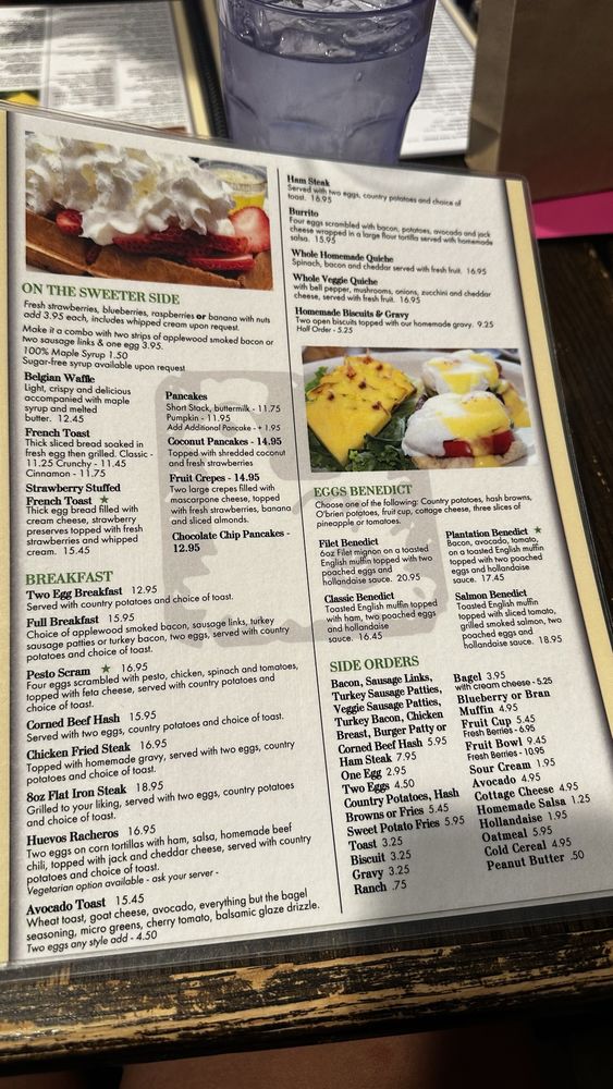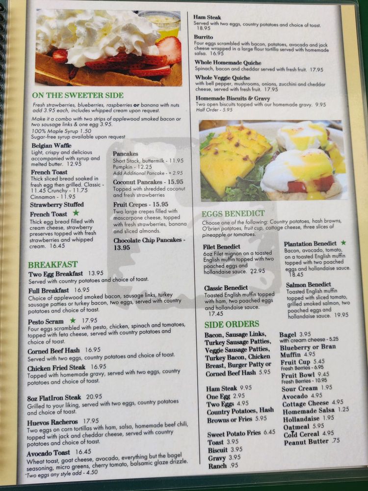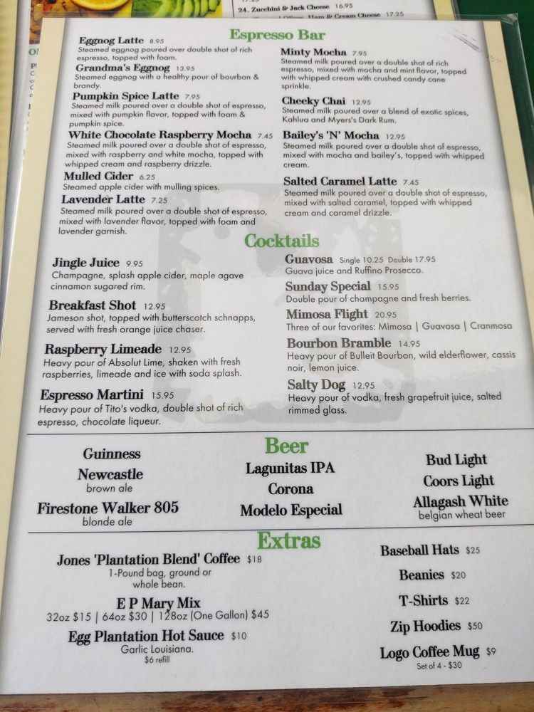 Introducing the menu at Egg Plantation, a beloved breakfast and brunch spot in Newhall, CA, offers a wide array that includes hearty breakfast options, a variety of omelets, and eggs benedict dishes. With options like the Pesto Scram, Corned Beef Hash, and classic Eggs Benedict, there is something for every palate. Customers rave about the attentive service and the flavorful dishes, with highlights like the pumpkin pancakes and the filet mignon Benedict receiving high praise. The restaurant also caters to dietary preferences with vegan and vegetarian options available. The ambiance is vibrant, with indoor and outdoor seating options, making it a perfect spot for a leisurely weekend brunch. Don't forget to try their crispy hashbrowns and flavorful Bloody Mary for a complete dining experience at Egg Plantation.